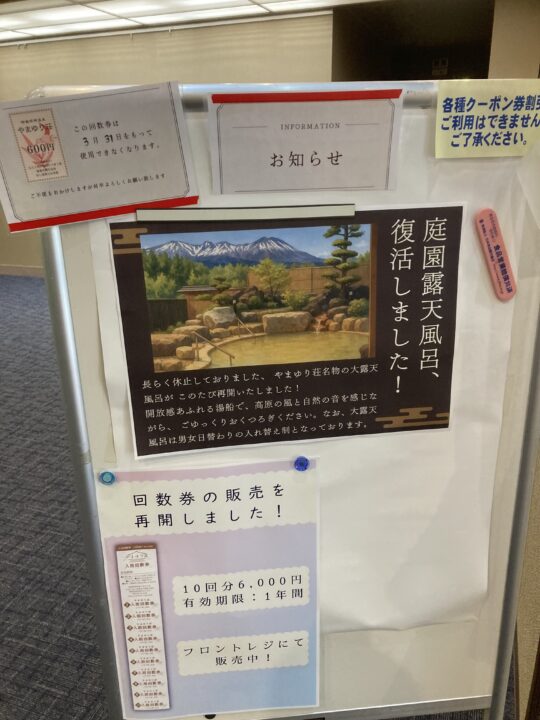 旧露天風呂再開。お食事処拡張等リニューアルされます。
