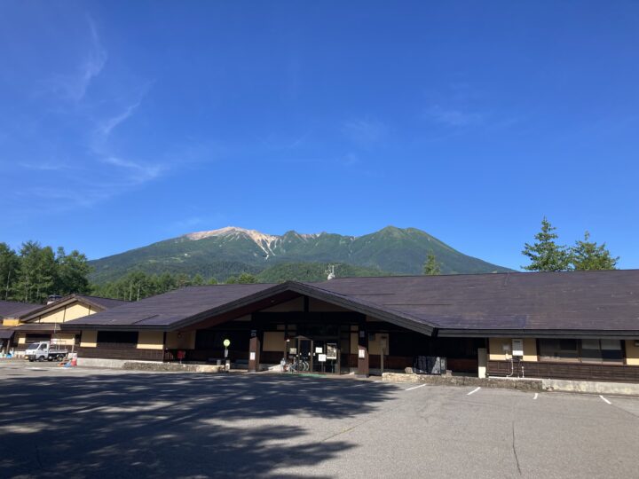 雄大な木曽御嶽山を間近に臨むやまゆり荘。